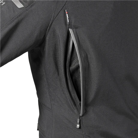 Een stormmanchet bij de mouwen en luchtinlaten die de luchtstroom door het lichaam leiden, dragen bij aan het klimaatcomfort.